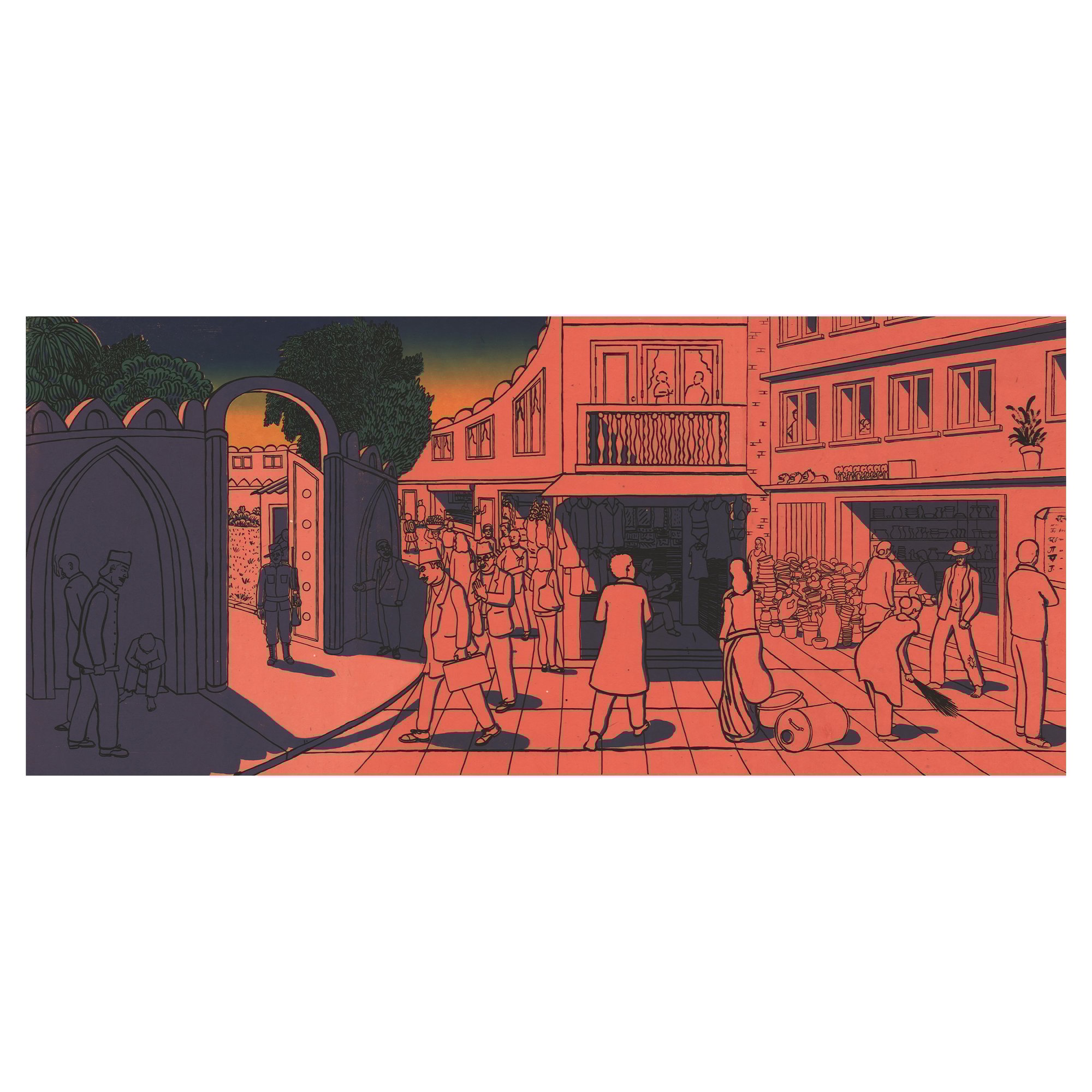 The print is an observation of the city of Bhaktapur in Nepal. It depicts the early morning of the day where people from all walks of life are ready to start their day. It was originally drawn from a trip to Nepal from few years ago.